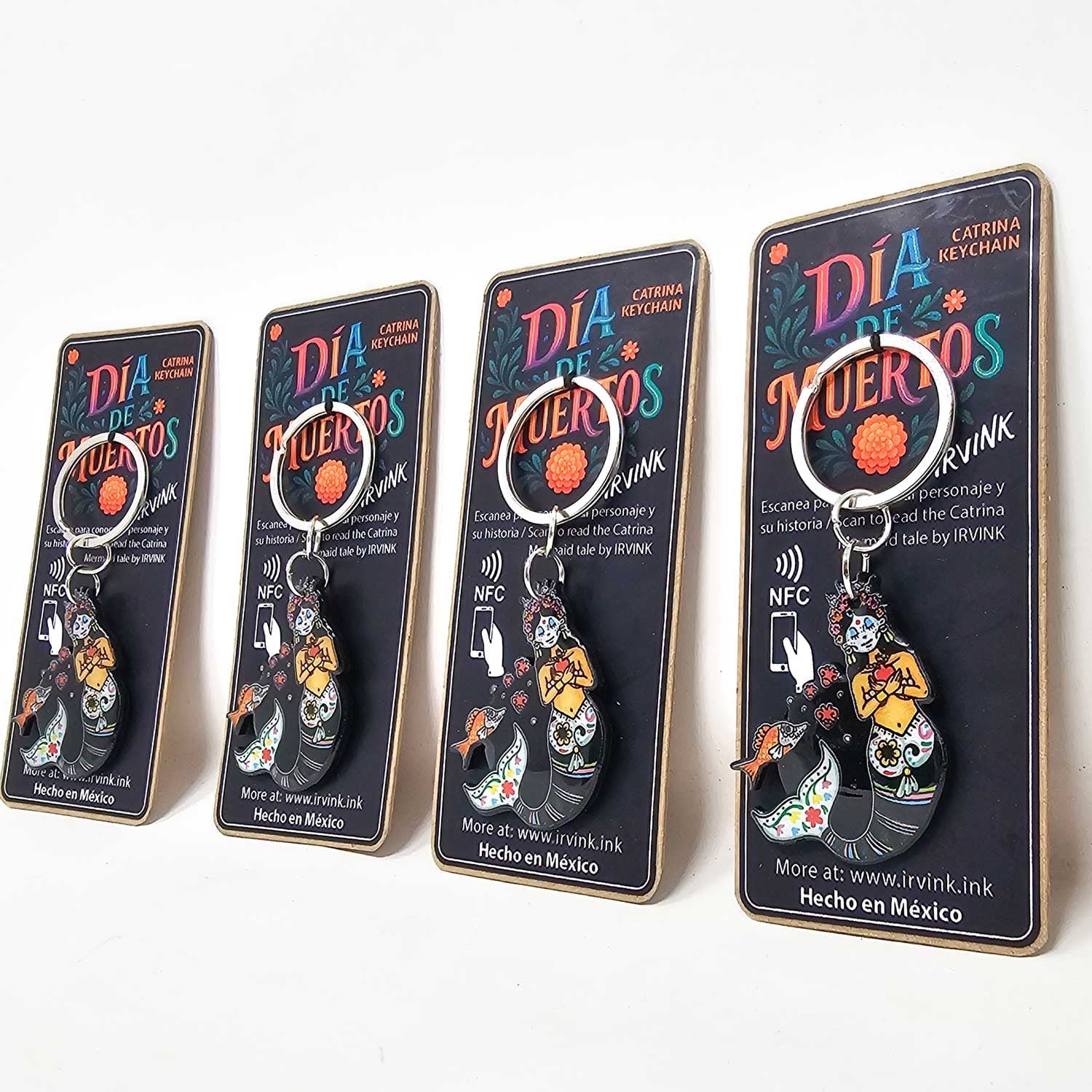 Tarjeta colgante con NFC para conocer la historia de los personajes y verificar originalidad.